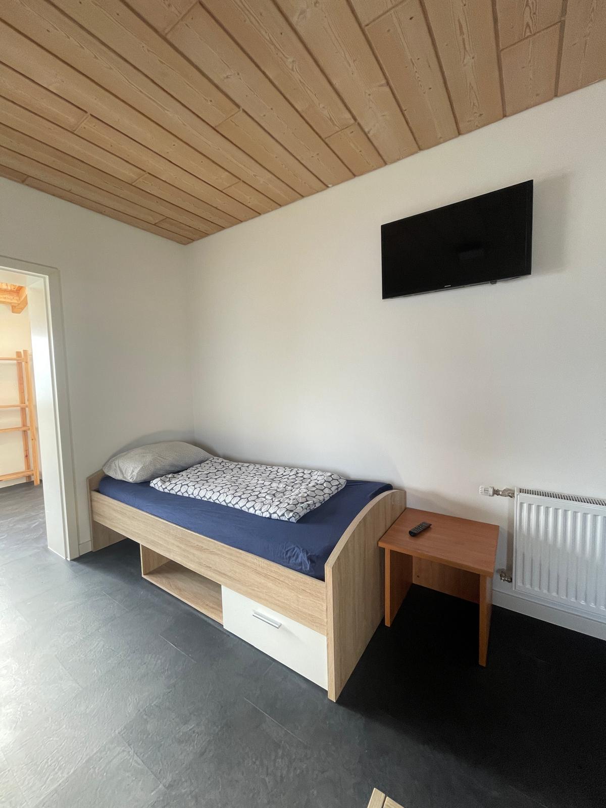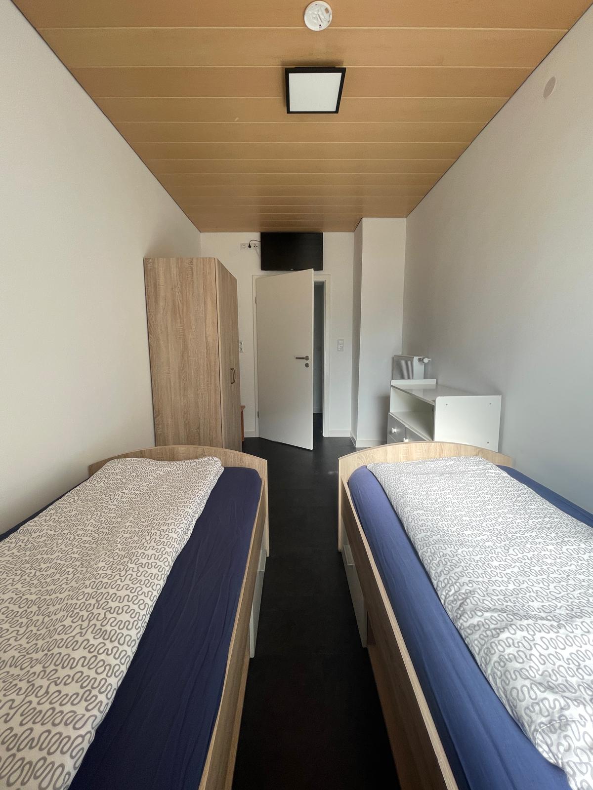 - Möblierte Räume: Bett, Schrank, Tisch, Stühle u.v.m.